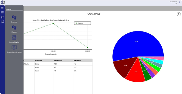 Inspeções em tempo real, relatórios de defeitos e rastreabilidade.